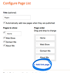 - La página nueva debería aparecer debajo de “Orden de páginas”. Haz clic en el botón Guardar (al final de la ventana del gadget).